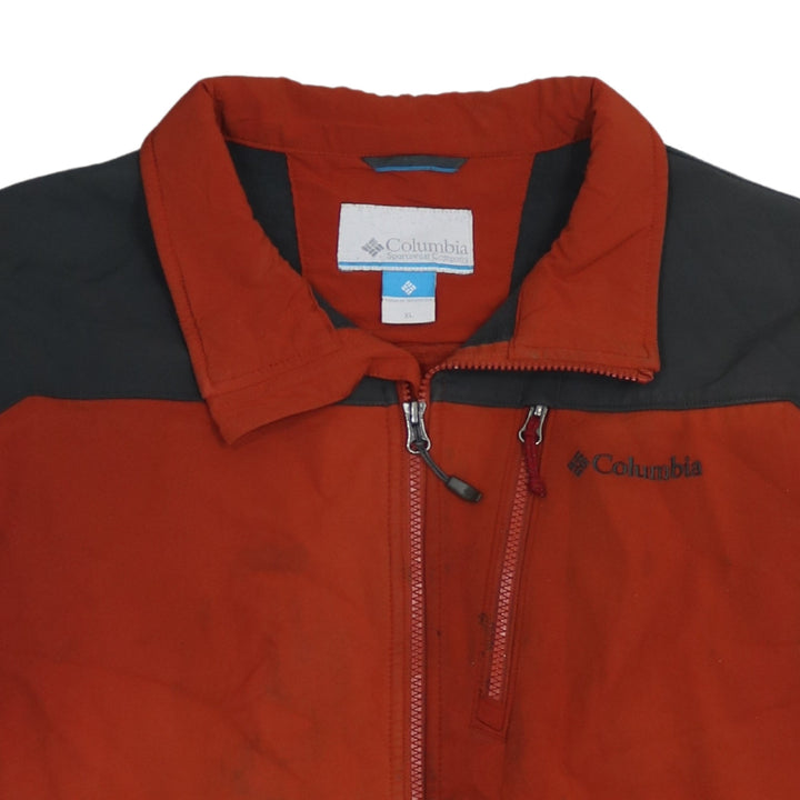 Columbia, Columbia Sportswear, Columbia jacket, Columbia windbreaker, Columbia outdoor jacket, red Columbia jacket, rust red jacket, red black jacket, colour block jacket, colour block windbreaker, men’s Columbia, men’s jacket, men’s windbreaker, men’s outdoor coat, XLarge jacket, XL jacket, full zip jacket, full zip windbreaker, embroidered logo jacket, embroidered chest logo, zip pockets jacket, casual outerwear, hiking jacket, walking jacket, everyday jacket, lightweight jacket, polyester jacket, wool blend jacket, long sleeve jacket, stand collar jacket, technical jacket, activewear jacket, layering piece, autumn jacket, spring jacket, outdoor clothing, sportswear jacket, vintage Columbia jacket, menswear, relaxed fit jacket, oversized fit jacket, functional jacket, practical jacket