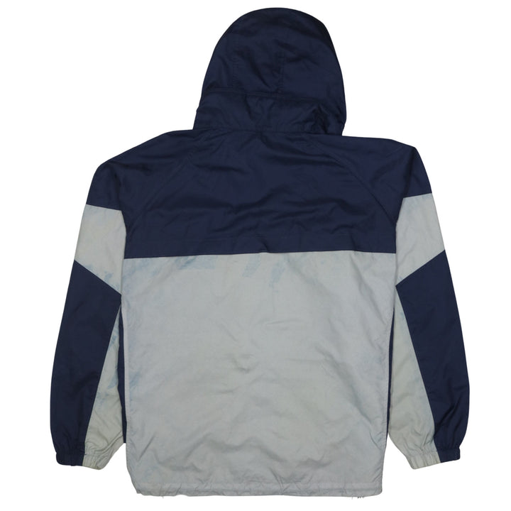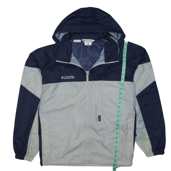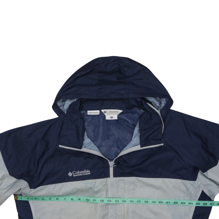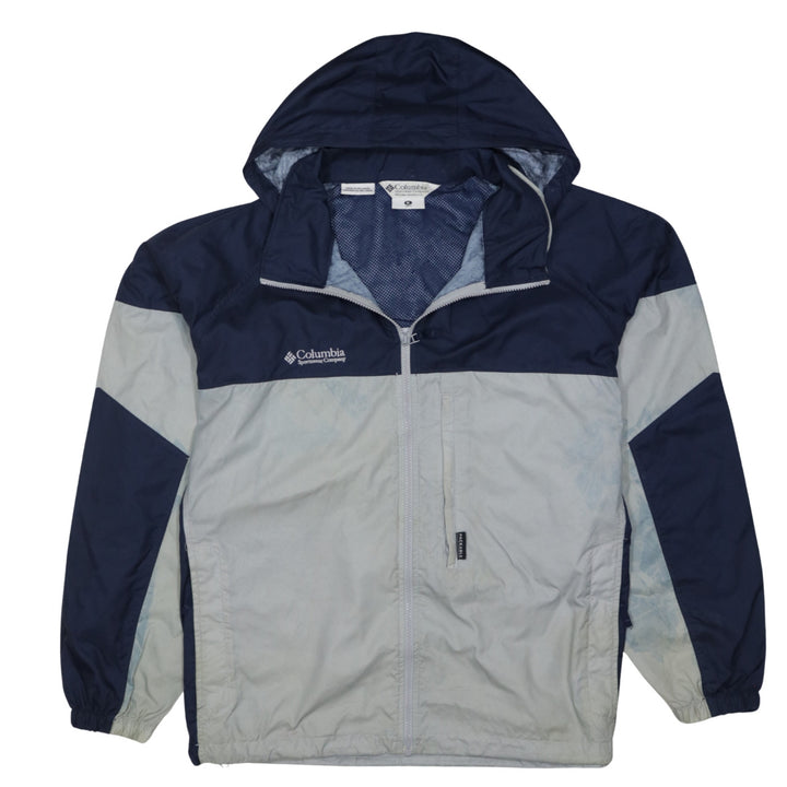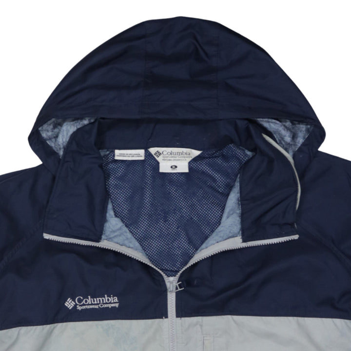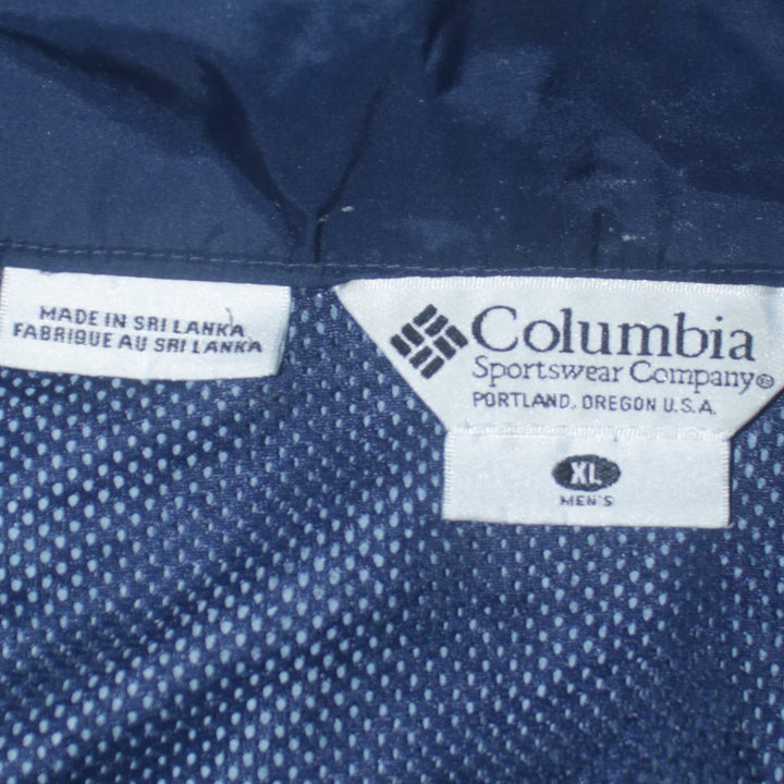 Columbia, Columbia jacket, Columbia windbreaker, Columbia hooded jacket, Columbia Sportswear Company, navy grey jacket, navy grey windbreaker, colour block jacket, colour block windbreaker, men's Columbia jacket, men's XLarge jacket, XL windbreaker, men's hooded jacket, full zip jacket, zip front jacket, outdoor jacket, casual jacket, track jacket, lightweight jacket, shell jacket, mesh lined jacket, embroidered logo jacket, logo windbreaker, elasticated cuffs, zip pocket jacket, hiking jacket, walking jacket, festival jacket, sportswear jacket, casual outerwear, everyday jacket, layering piece, nylon style shell, polyester jacket, wool blend jacket, 90s style Columbia, pre-owned Columbia, used Columbia jacket, second hand jacket, navy jacket, grey jacket, men's outerwear, men's casual coat, street jacket, activewear jacket, athletic jacket, training jacket, waterproof style jacket, wind resistant jacket, XL men's coat, Columbia Sportswear windbreaker, hooded shell, practical jacket