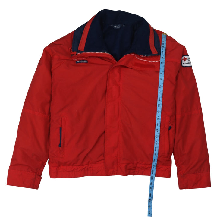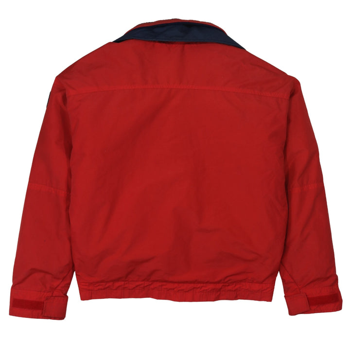 Key Features: Bright red shell, navy fleece lining, logo sleeve patch, zip front, zip pockets