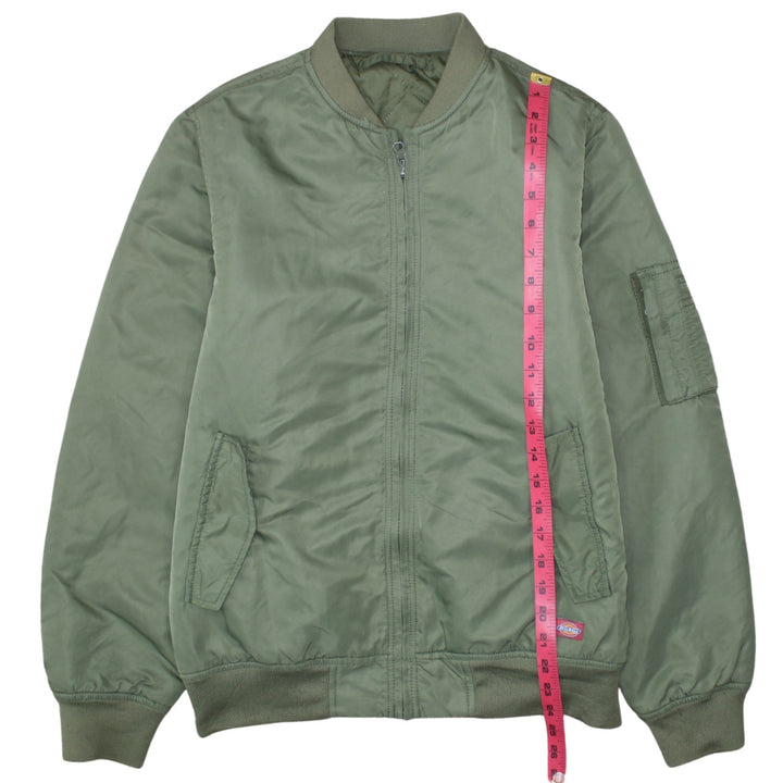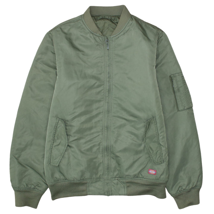 Dickies Olive Green Bomber Jacket Men's Small Zip Pockets Arm Pocket Ribbed Hem Windbreaker Outerwear