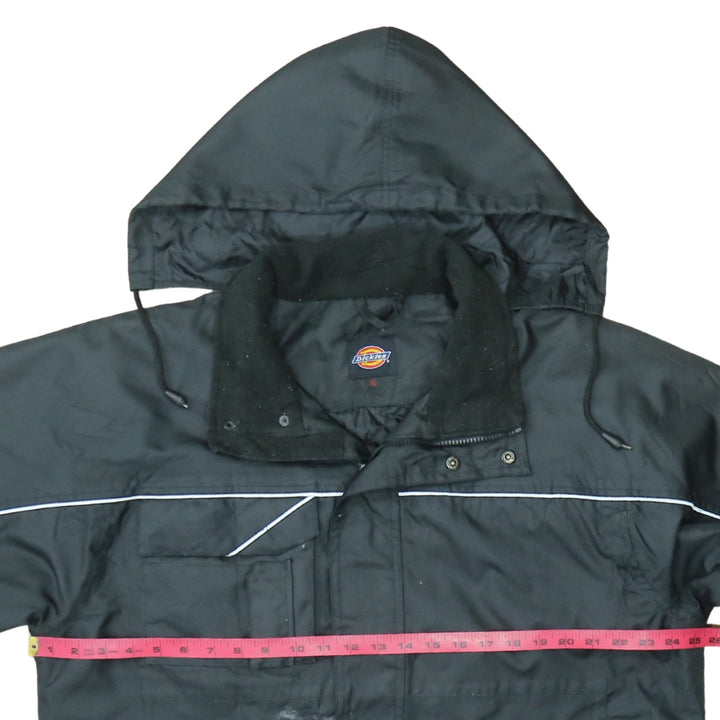 Dickies Black Hooded Jacket Men’s XLarge Reflective Trim Multi Pocket Workwear Coat