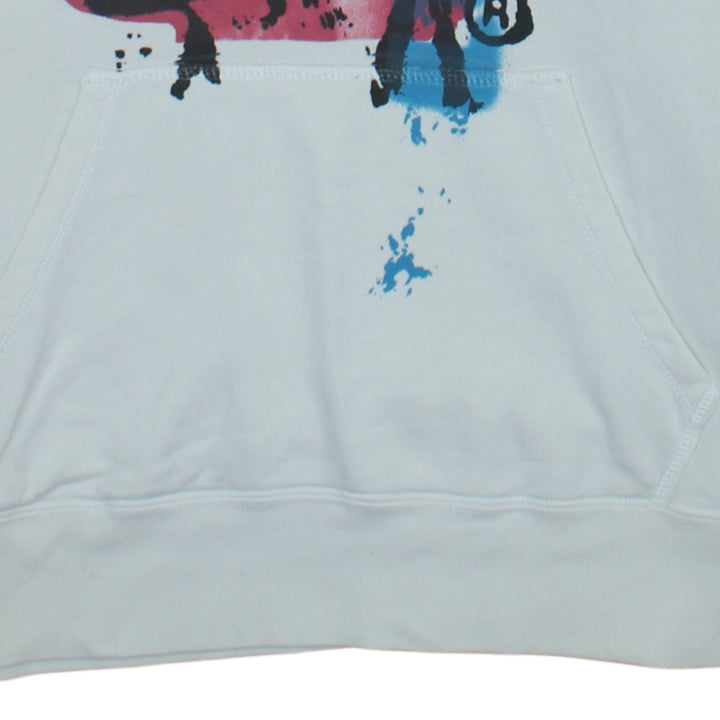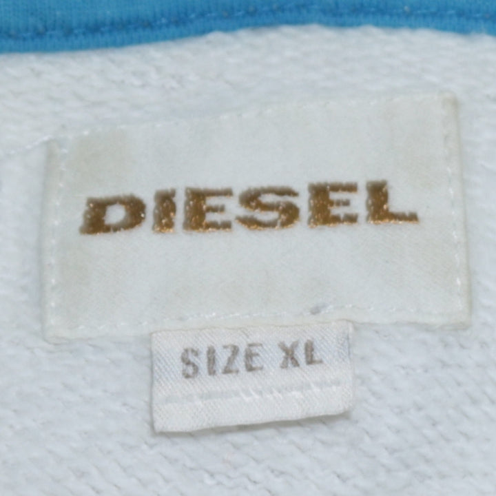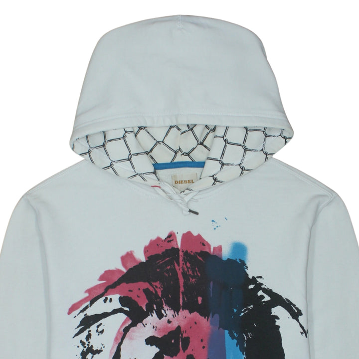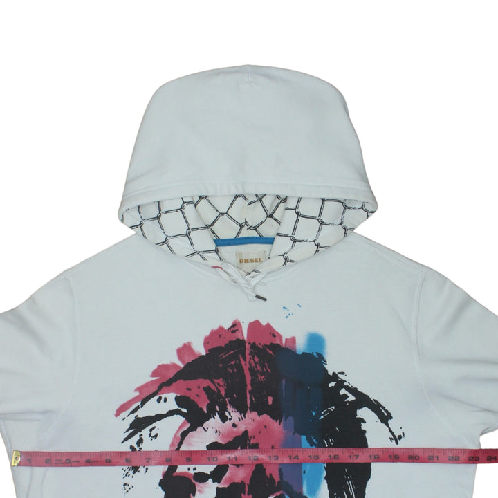 Diesel White Hoodie Women’s XLarge Graphic Print Front Pouch Cotton Pullover Sweatshirt