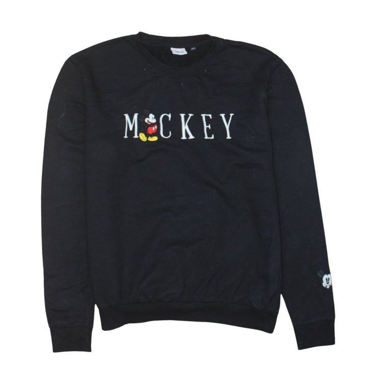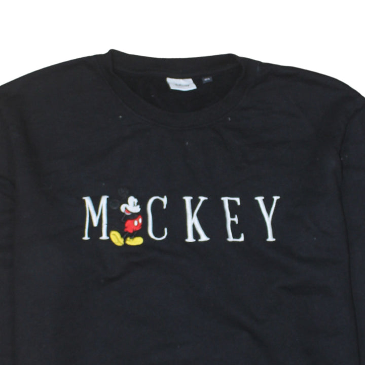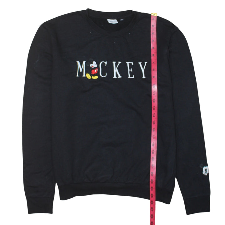 Disney Black Sweatshirt Women's Large Mickey Mouse Printed Logo Crewneck Pullover Top