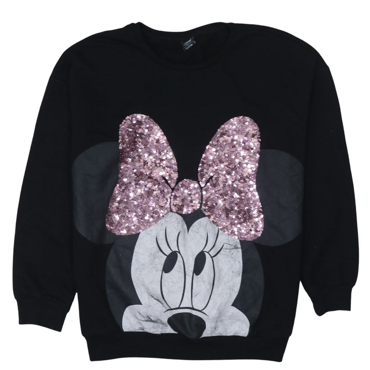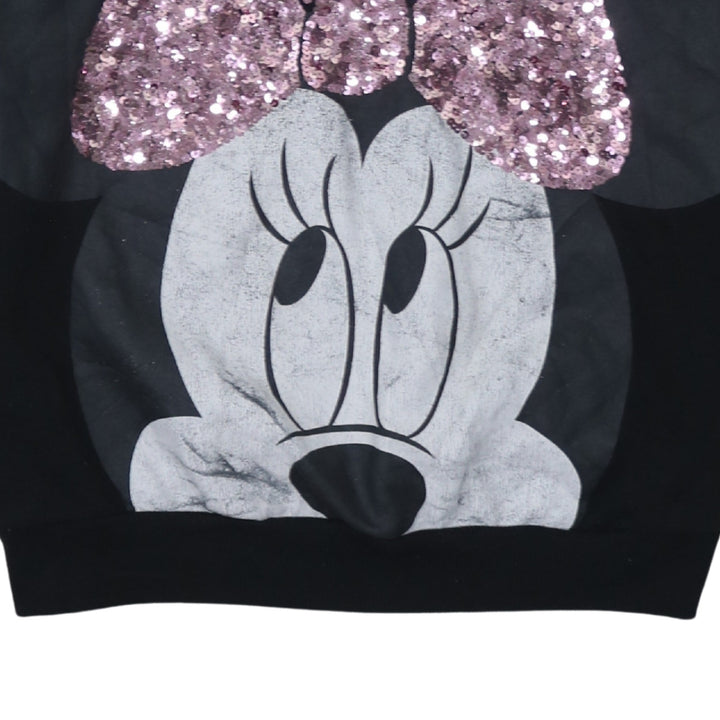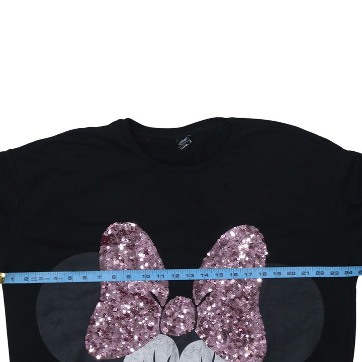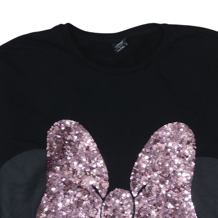 Disney Black Sweatshirt Women's XLarge Sequin Minnie Mouse Bow Printed Graphic Pullover Top