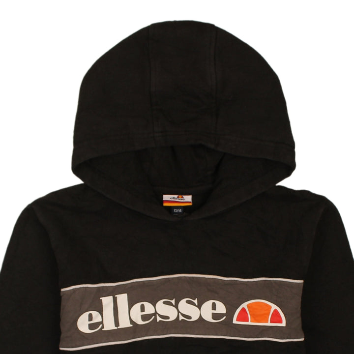 Ellesse Black Hoodie Women’s Medium 13/14 Printed Logo Front Pocket Pullover Sweatshirt