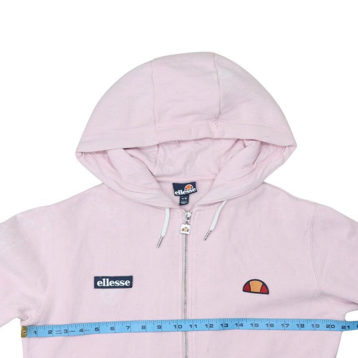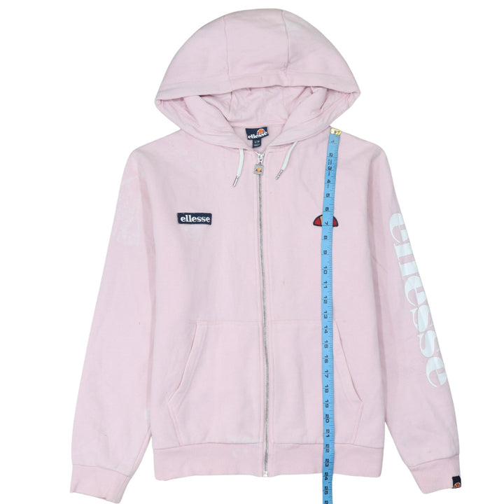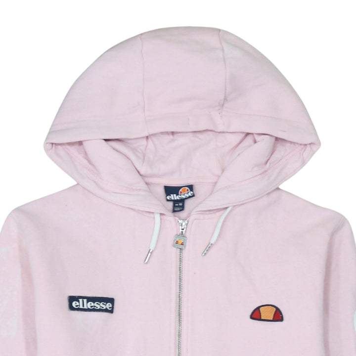 Ellesse Light Pink Hoodie Women’s Medium Full Zip Embroidered Chest Logo Printed Sleeve Sweatshirt