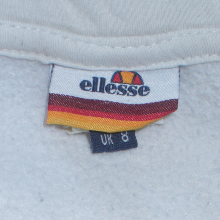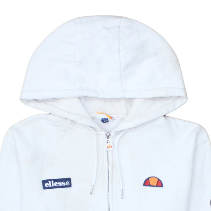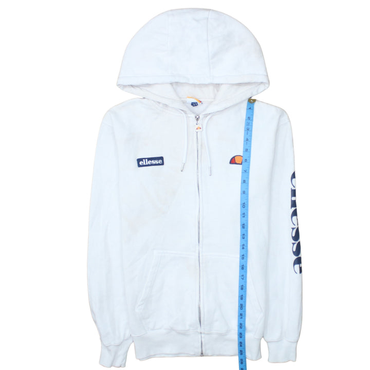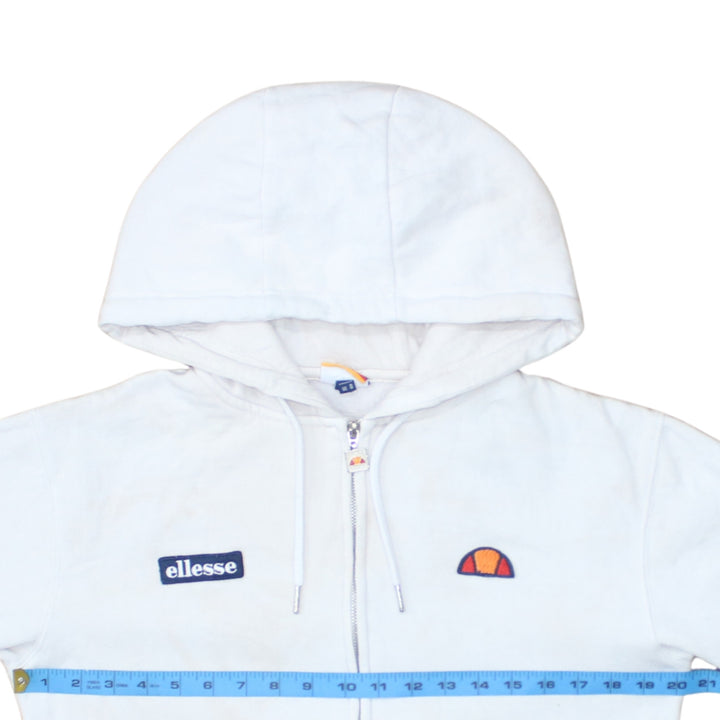 Ellesse White Zip Hoodie Women’s Medium Embroidered Logos Sleeve Print Casual Sweatshirt