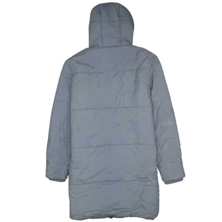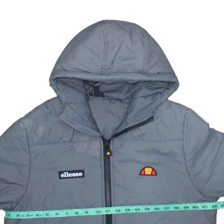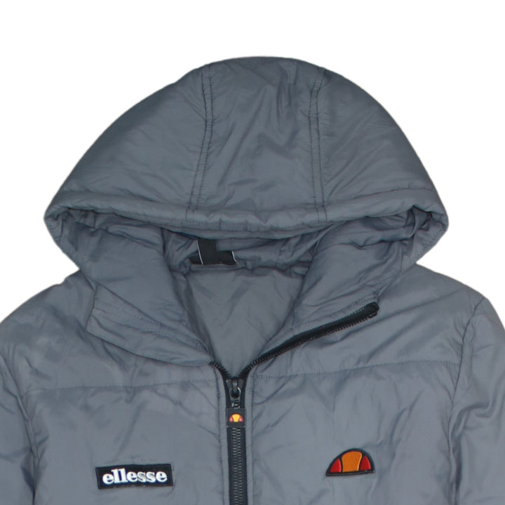Ellesse Grey Hooded Puffer Jacket Women’s Large Embroidered Chest Logos Full Zip Coat