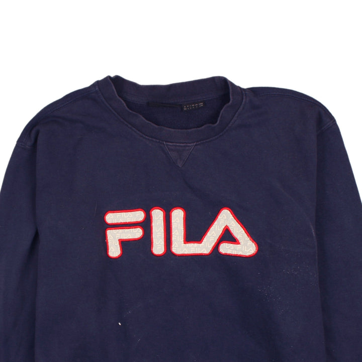 Fila 90's Navy Blue Spellout Crew Neck Sweatshirt Men's L