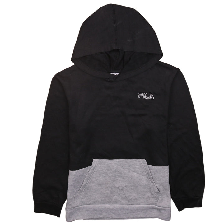 Fila Vintage 90s Large Hoodie Black Grey Retro Drawstring Pockets