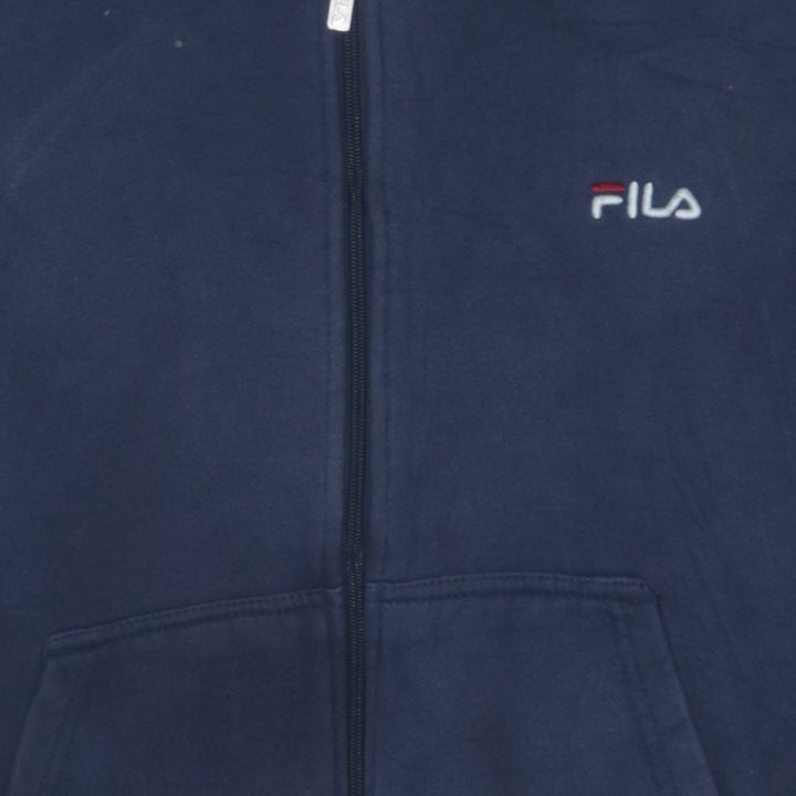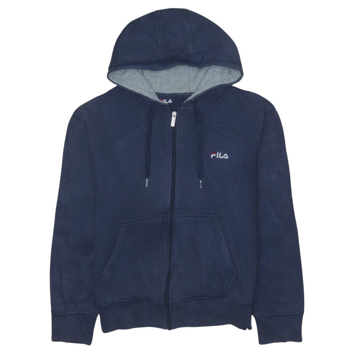 Fila Navy Blue Hoodie Men's Small Full Zip Embroidered Chest Logo Front Pockets Sweatshirt