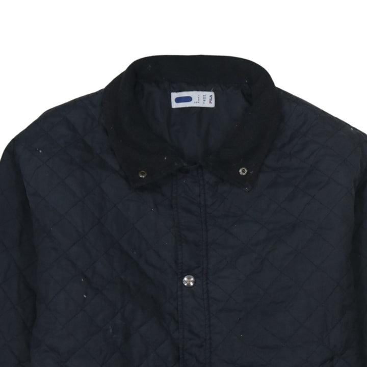 Fila Black Quilted Jacket Men’s Large Cord Collar Snap Front Pockets Outerwear