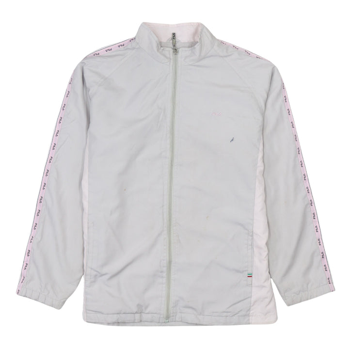 Fila, Fila jacket, Fila windbreaker, Fila track jacket, Fila outerwear, light grey Fila, grey windbreaker, men’s Fila jacket, men’s Large Fila, Large windbreaker, logo tape sleeves, branded sleeve tape, full zip jacket, stand collar jacket, casual sports jacket, lightweight jacket, polyester jacket, wool blend lining, relaxed fit jacket, oversized fit jacket, men’s grey jacket, everyday outerwear, casual outerwear, activewear jacket, sportswear jacket, training jacket, track top, long sleeve jacket, logo jacket, embroidered logo jacket, Fila logo tape, grey track top, zip front jacket, spring jacket, autumn jacket, layering piece, athleisure jacket, classic Fila style, pre-owned Fila, second hand Fila jacket, men’s casual wear, men’s sportswear, track jacket Large, windbreaker Large, neutral colour jacket, minimalist jacket, comfortable jacket