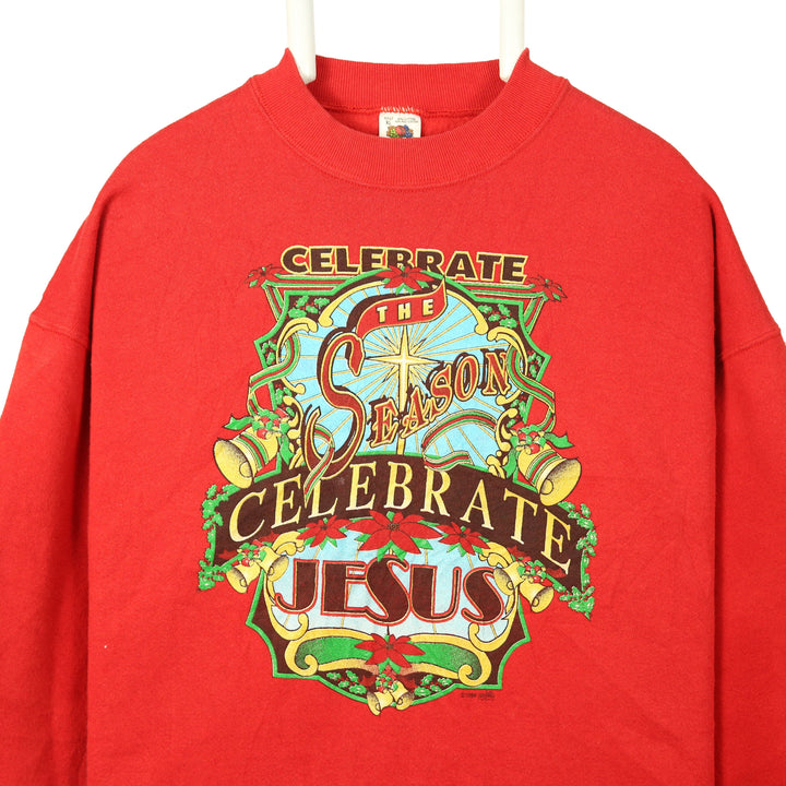 Fruit of the Loom 90's Jesus Crewneck Sweatshirt XLarge Red