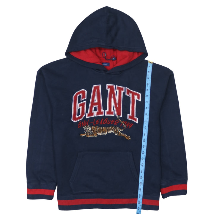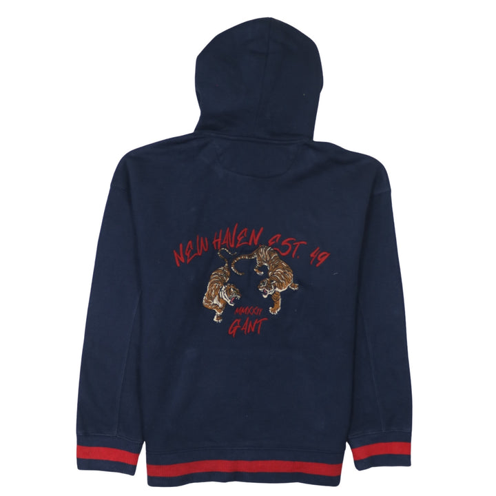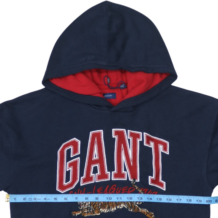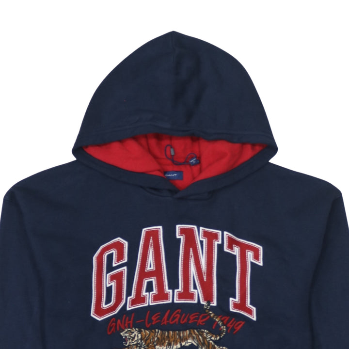 GANT Navy Blue Hoodie Women’s Medium Embroidered Tiger Logo Front Back Pullover Sweatshirt