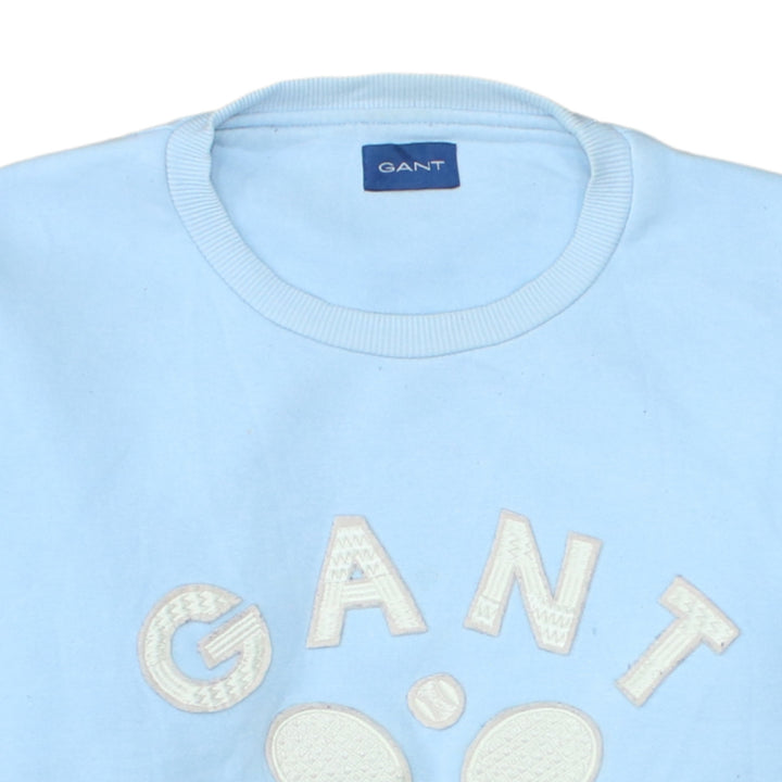 GANT Light Blue Sweatshirt Men's Medium Embroidered Tennis Logo Crewneck Pullover Top
