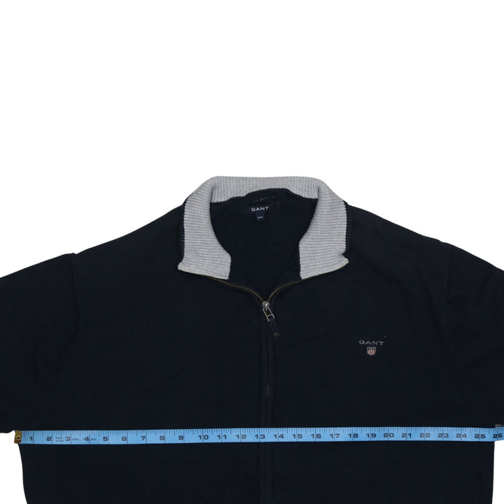 GANT, GANT jumper, GANT sweater, GANT zip jumper, GANT knitwear, black GANT jumper, black full zip jumper, women's GANT, women's knit sweater, women's full zip cardigan, size 2XL jumper, plus size knit, oversized zip sweater, cotton blend jumper, cotton knit cardigan, embroidered logo jumper, shield logo, ribbed collar jumper, stand collar knit, black knit zip top, casual knitwear, classic knit, pre-owned GANT, second hand GANT jumper, timeless style sweater, minimalist jumper, smart casual knit, layering piece, everyday jumper, loungewear knit, office casual sweater, black women's cardigan, zip front cardigan, long sleeve knit top, soft cotton jumper, stretchy knit sweater, 2XL women's knitwear, chest 26 inch jumper, length 29 inch jumper, arm 22.5 inch sleeve, A grade condition knit, quality GANT knitwear