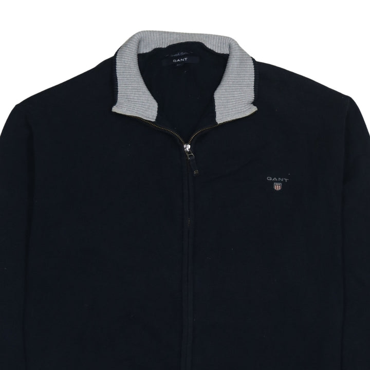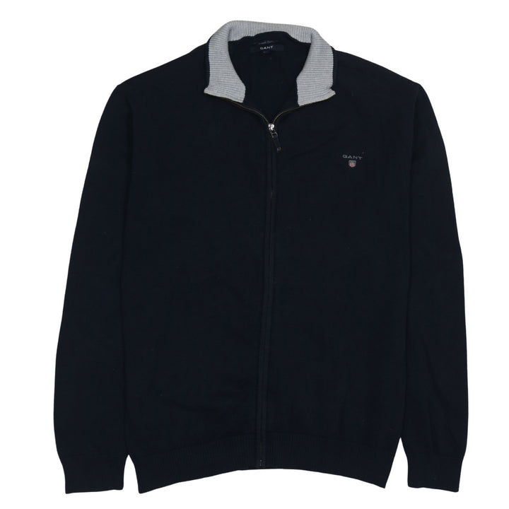 GANT Black Full Zip Jumper Women's XXLarge Embroidered Chest Logo Ribbed Collar Knit Sweater