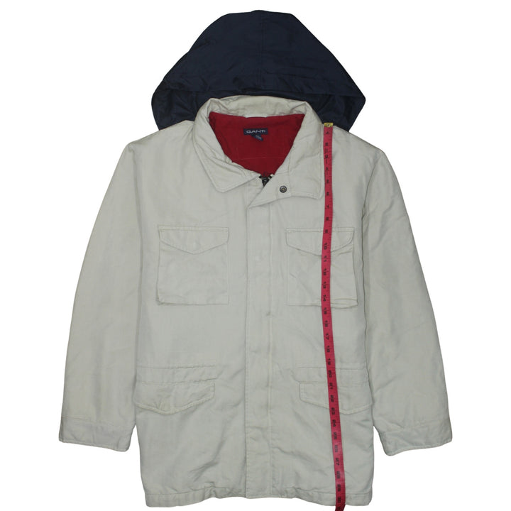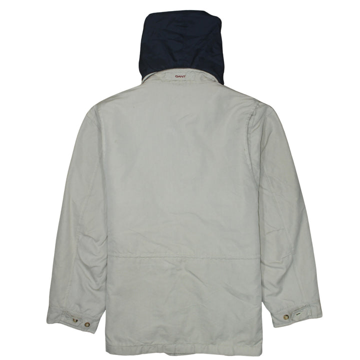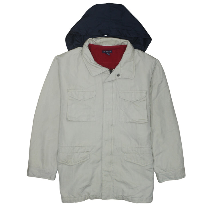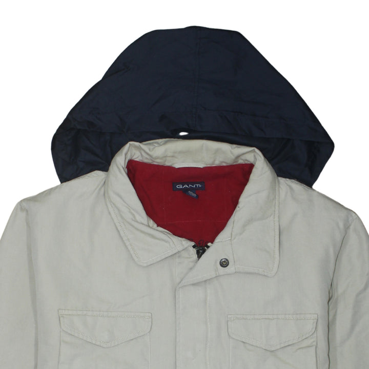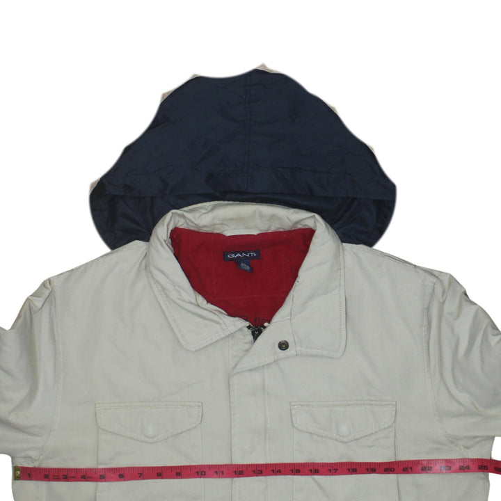 GANT jacket, GANT hooded jacket, GANT beige jacket, GANT cream jacket, GANT mens jacket, GANT XL jacket, GANT XLarge coat, beige hooded jacket, cream hooded jacket, mens hooded jacket, mens beige coat, mens cream coat, cotton blend jacket, waxed cotton jacket, casual outerwear, men’s outerwear, zip front jacket, snap front jacket, four pocket jacket, chest pockets jacket, utility style jacket, relaxed fit jacket, oversized fit jacket, lined jacket, red lining jacket, navy hood jacket, everyday jacket, casual coat, spring jacket, autumn jacket, lightweight coat, windbreaker jacket, classic menswear, timeless jacket, GANT outerwear, neutral colour jacket, mens XL outerwear, pit to pit 25.5 jacket, length 30.5 jacket, button cuff jacket, practical jacket, functional outerwear, street casual jacket, layering piece, wardrobe staple, second hand GANT, pre-owned GANT jacket, A grade condition jacket
