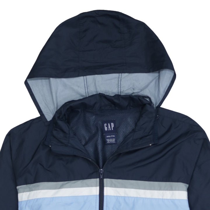 Gap Navy Light Blue Hooded Windbreaker Men’s XXL Full Zip Reflective Stripe Jacket
