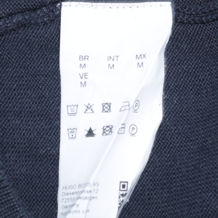 Key Features: Navy cotton blend, blue stripe trims, embroidered BOSS chest logo, textured sleeves