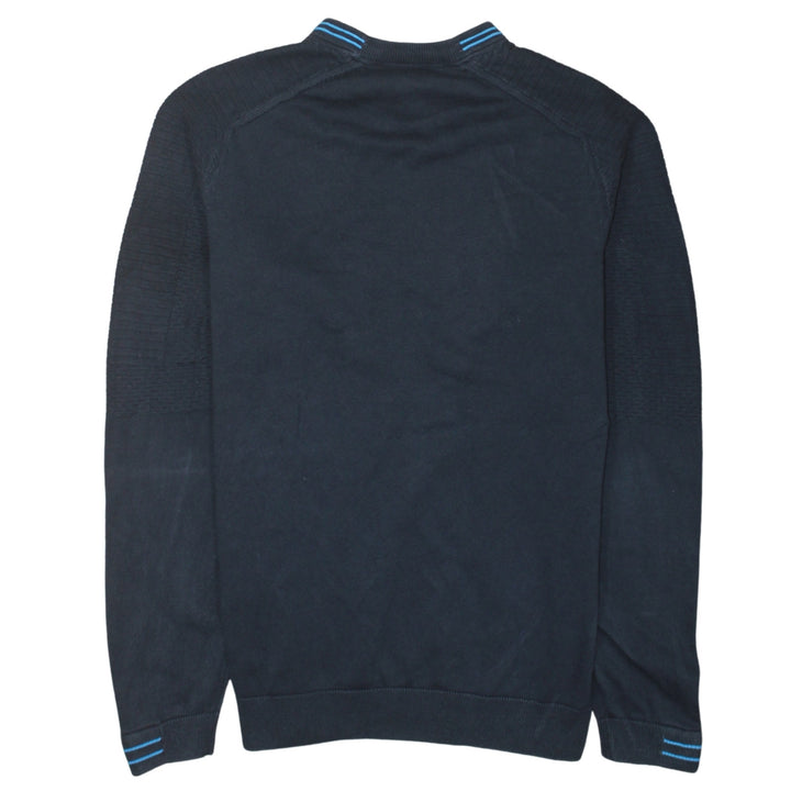 HUGO BOSS Navy Sweatshirt Women’s Medium Embroidered Chest Logo Stripe Trim Pullover Jumper