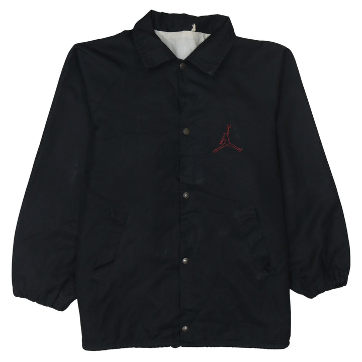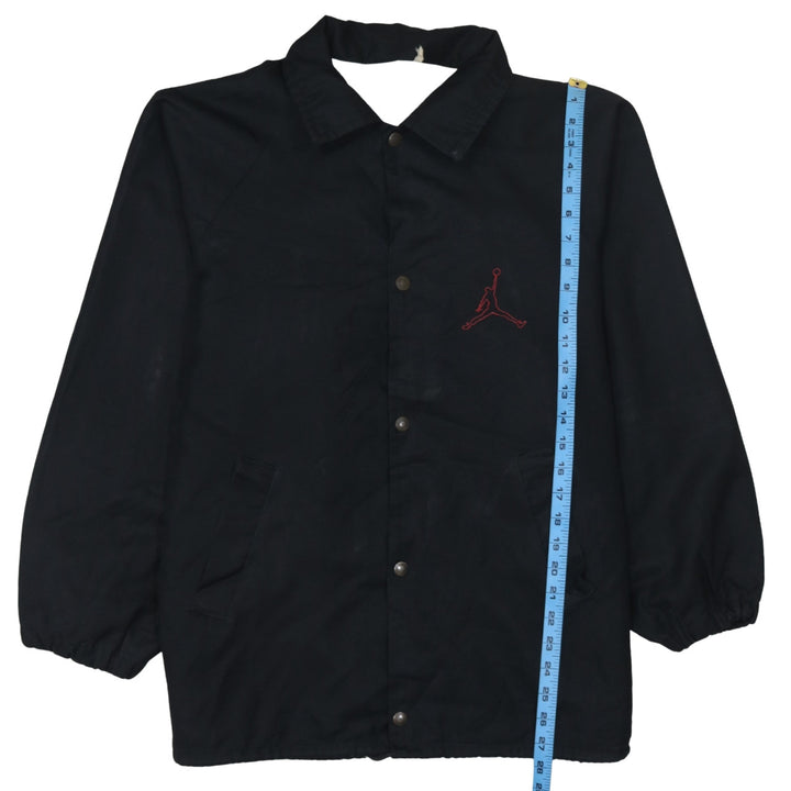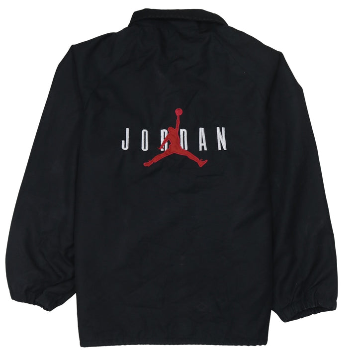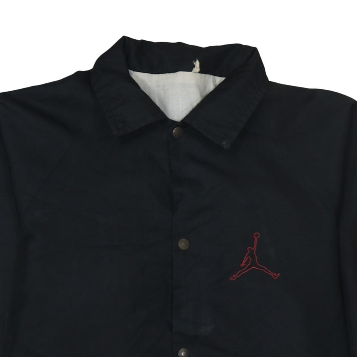 Jordan Black Windbreaker Jacket Men's Medium Embroidered Jumpman Logo Snap Front Coach Outerwear