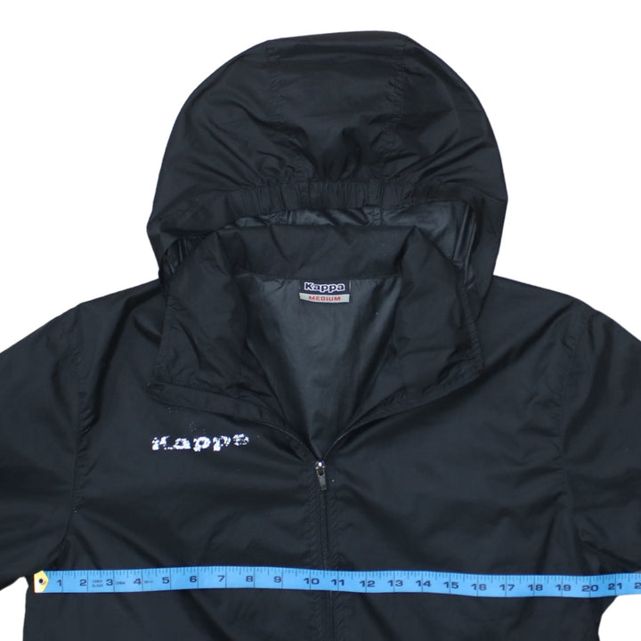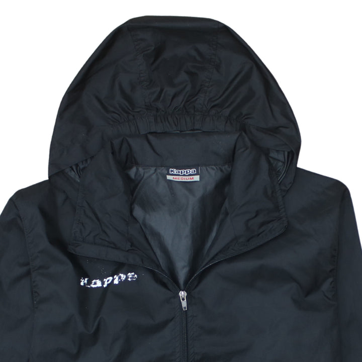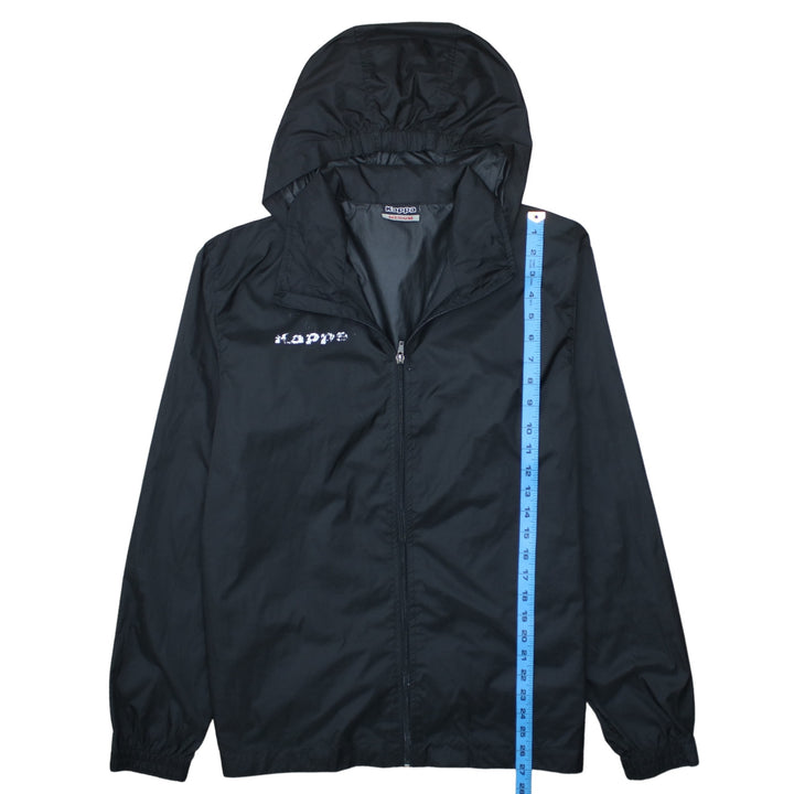 Kappa Black Hooded Windbreaker Men's Medium Zip Front Printed Chest Logo Jacket
