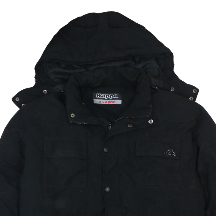Kappa Black Hooded Jacket Men’s XLarge Zip Press Stud Pockets Small Logo Parka Coat