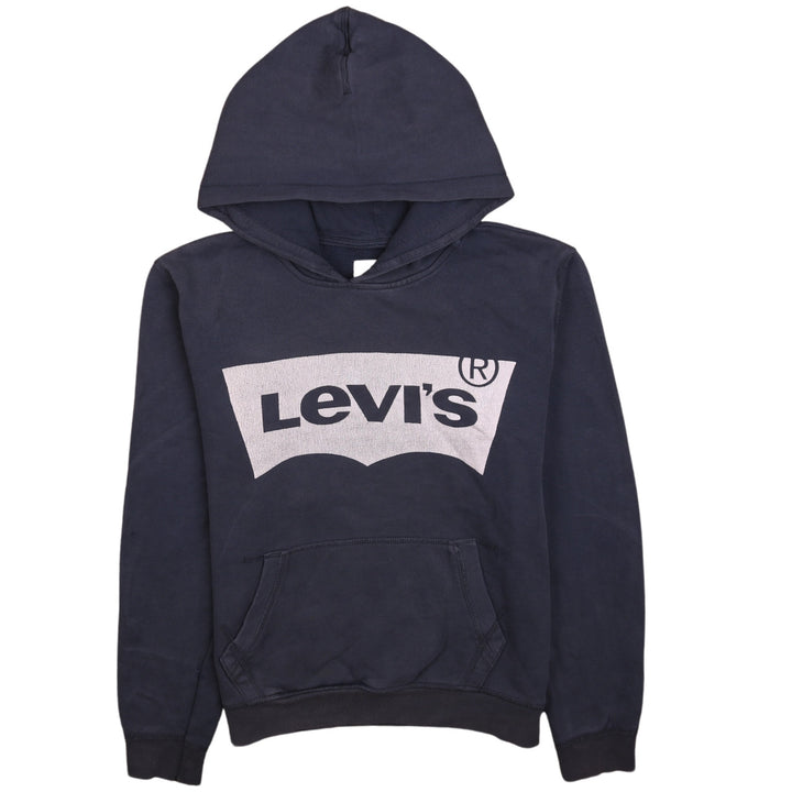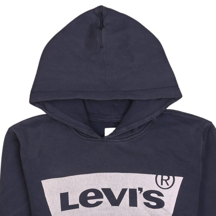 Levi's Navy Blue Hoodie Women's Medium Printed Batwing Logo Front Pocket Pullover Sweatshirt