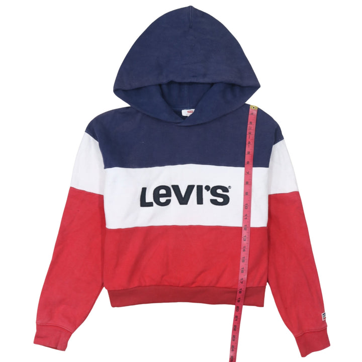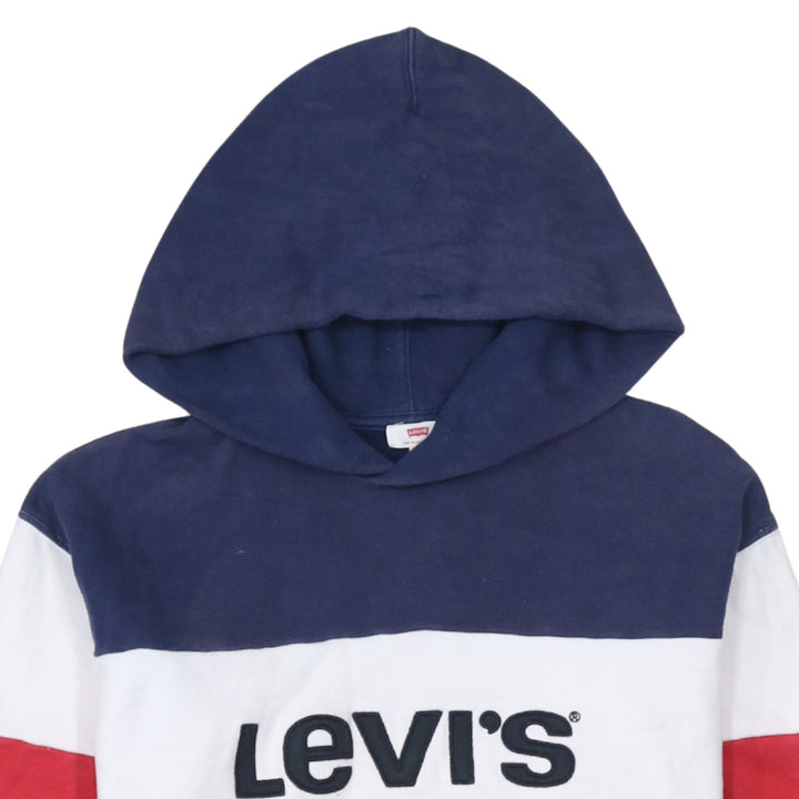 Levi's Navy White Red Hoodie Women's XSmall Printed Logo Colour Block Pullover Sweatshirt