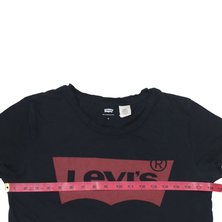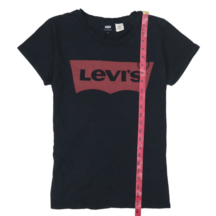Levi's Black T-Shirt Men's Medium Red Batwing Printed Logo Short Sleeve Tee Top