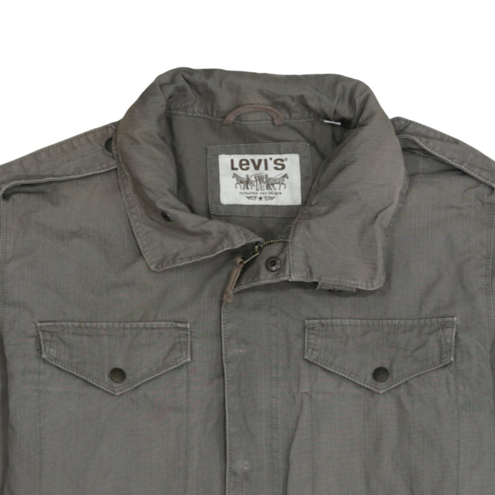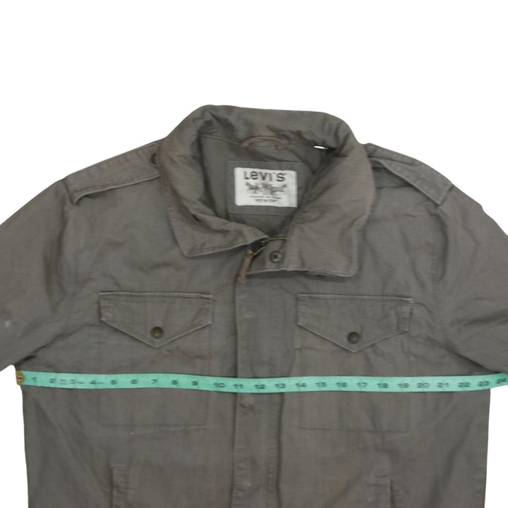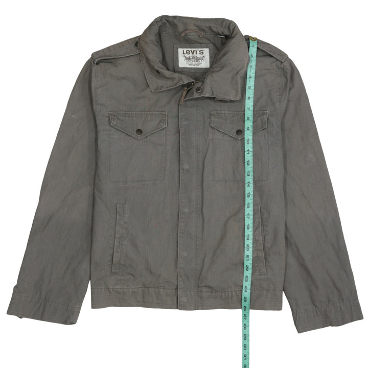 Levi's Grey Jacket Men's Large Epaulettes Chest Pockets Zip Front Casual Outerwear