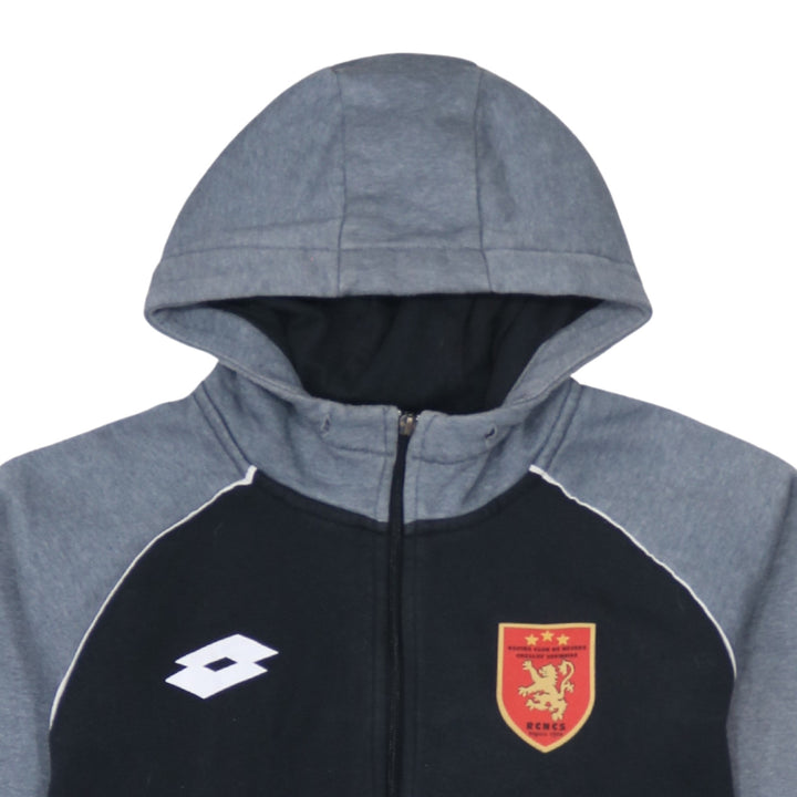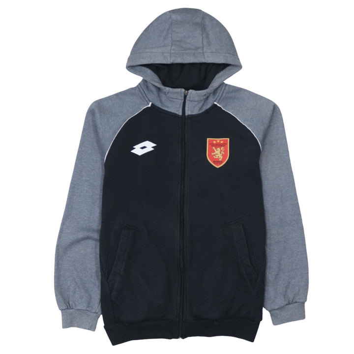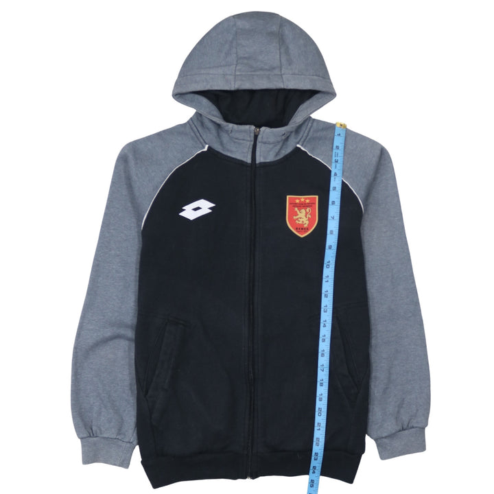 Lotto Black Grey Hoodie Men's Small Full Zip Embroidered Crest Logo Pockets Sweatshirt