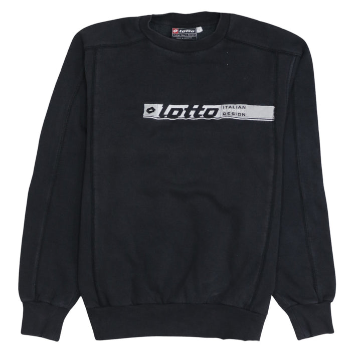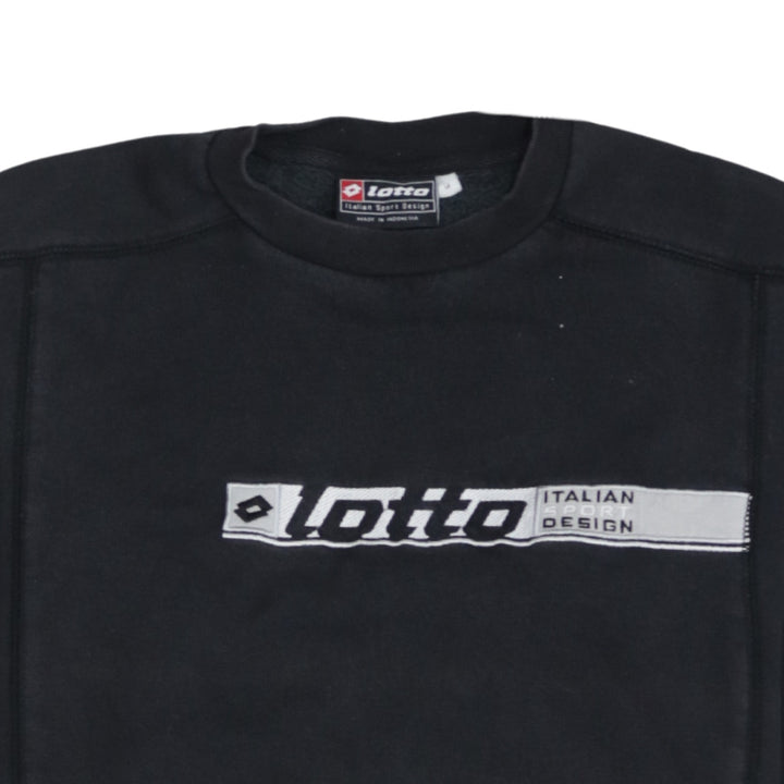 Lotto Black Sweatshirt Men's Medium Embroidered Chest Logo Crewneck Pullover Top