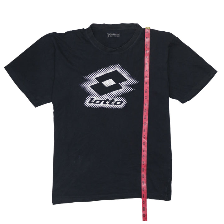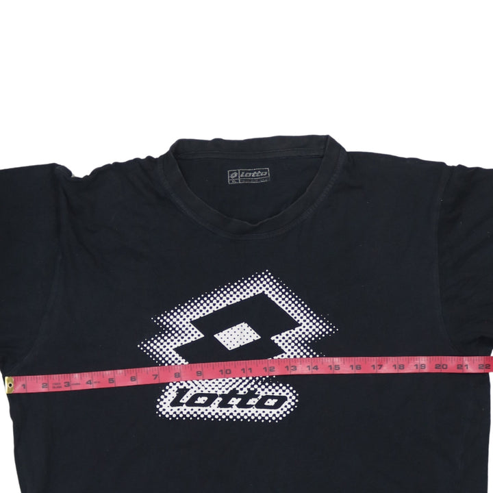 Lotto, Lotto T shirt, Lotto tee, Lotto logo top, black Lotto T shirt, black logo tee, men's Lotto T shirt, men's black tee, men's XLarge T shirt, XL T shirt, XL tee, short sleeve T shirt, short sleeve top, crew neck T shirt, crew neck tee, graphic logo T shirt, printed logo tee, sports brand T shirt, casual cotton T shirt, everyday casual top, relaxed fit T shirt, oversized fit tee, 42 44 chest T shirt, classic sportswear tee, football fan T shirt, tennis brand T shirt, skate style tee, summer T shirt, layering top, black casual top, soft jersey T shirt, Lotto sportswear, Lotto clothing, Lotto apparel, men's casual wear, men's tops, graphic sports tee, monochrome logo T shirt, wardrobe staple tee, second hand clothing, pre-owned Lotto T shirt, A grade condition tee