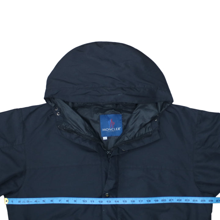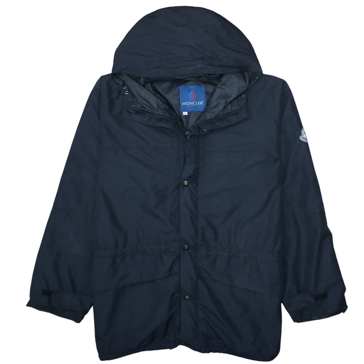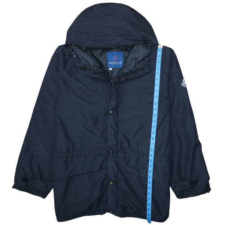 Moncler, Moncler jacket, Moncler hooded jacket, Moncler windbreaker, navy Moncler, navy blue jacket, navy hooded coat, men's Moncler, men's hooded jacket, men's windbreaker, XLarge jacket, XL jacket, oversized fit jacket, relaxed fit coat, embroidered logo sleeve, logo patch arm, zip front jacket, snap button closure, lightweight outerwear, casual jacket, everyday coat, polyester jacket, wool blend jacket, hooded outerwear, rain jacket, shell jacket, classic Moncler style, designer outerwear, premium jacket, longline jacket, adjustable waist jacket, drawcord waist, elasticated cuffs, minimalist jacket, solid colour jacket, navy shell coat, pre-owned Moncler, second hand Moncler, A grade condition, men's fashion, casual outerwear, smart casual jacket, layering piece, spring jacket, autumn jacket, all season coat, functional outerwear, branded jacket, luxury casual jacket, Italian designer brand, blue hooded windbreaker