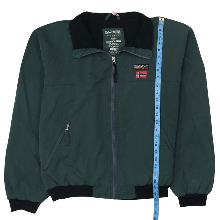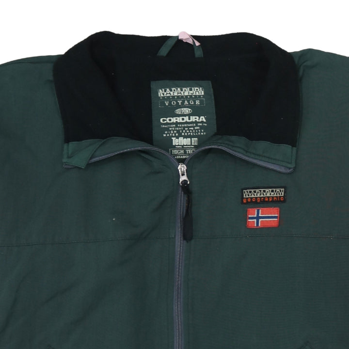 Napapijri Dark Green Jacket Men's XLarge Embroidered Flag Logo Zip Pockets Windbreaker Outerwear