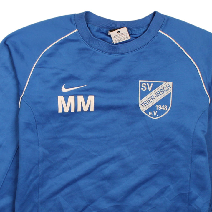 Vintage Nike 90's Women's Large Blue Swoosh Crew Neck Sweatshirt