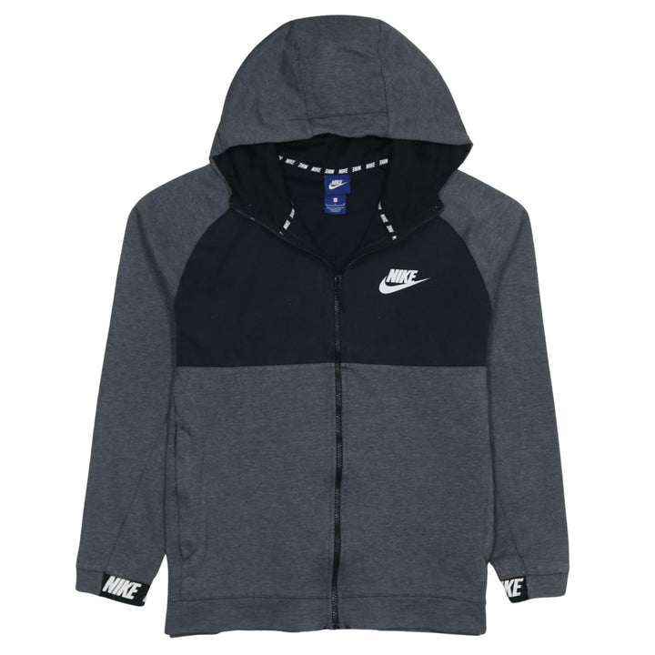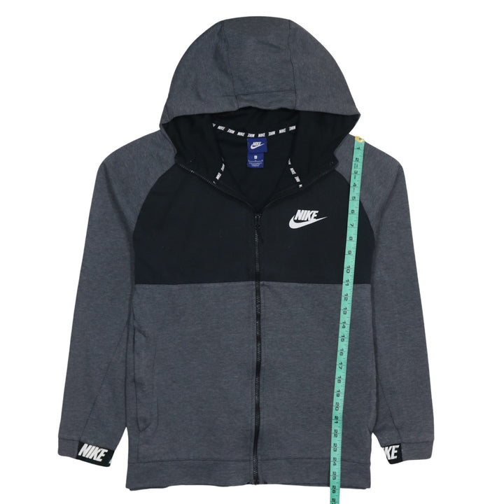 Nike Dark Grey Full Zip Hoodie Men's Large Embroidered Swoosh Logo Cuff Branding Sweatshirt