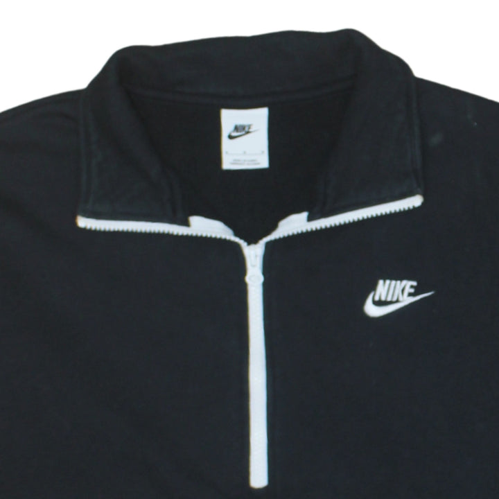 This classic Nike black quarter zip sweatshirt is a perfect everyday staple. The soft cotton blend fleece and relaxed fit make it ideal for layering over tees or under jackets on cooler days. The clean funnel neck and contrast white zip give it a sharp, sporty finish, while the embroidered Nike Swoosh keeps the branding timeless and versatile. A great grab-and-go piece for casual outfits, commuting, or lounging.