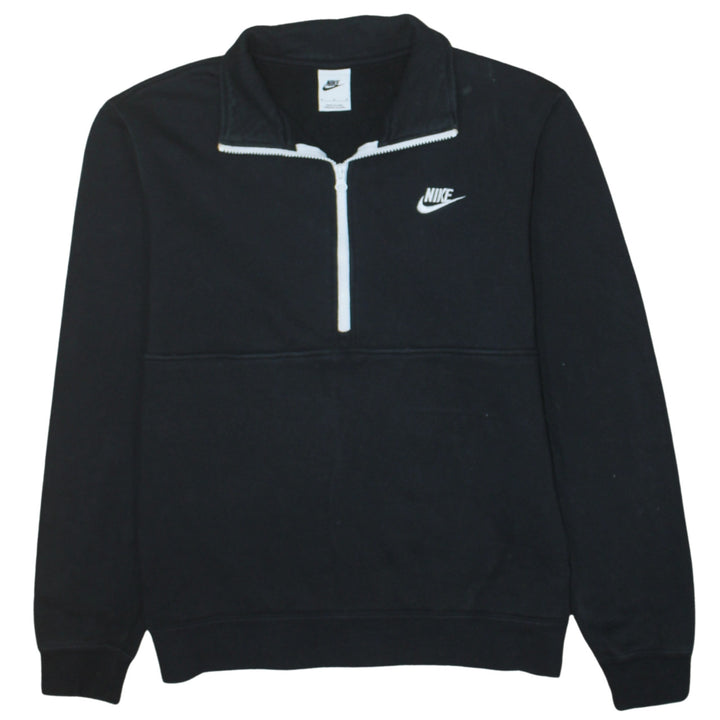 Nike Black Quarter Zip Sweatshirt Men's Medium Embroidered Swoosh Funnel Neck Pullover
