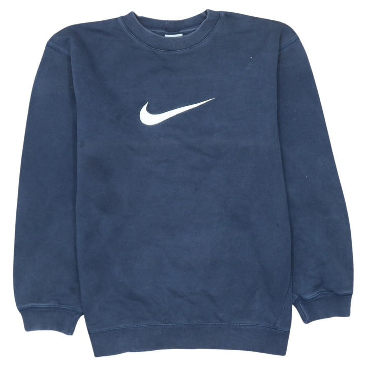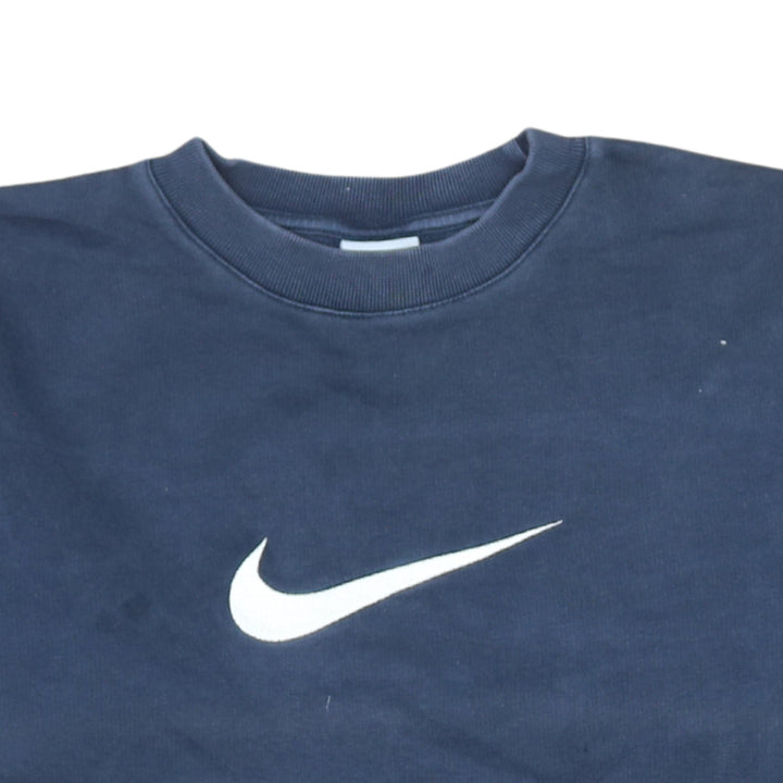 Vintage Nike 90's XLarge Navy Blue Crew Neck Sweatshirt with Center Swoosh