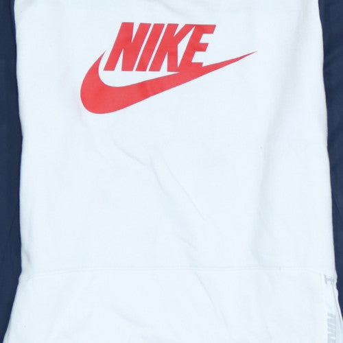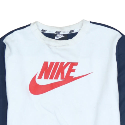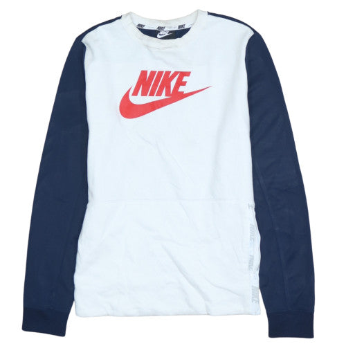 Nike White Navy Sweatshirt Women's XLarge Printed Chest Logo Colour Block Pullover Top