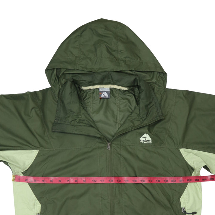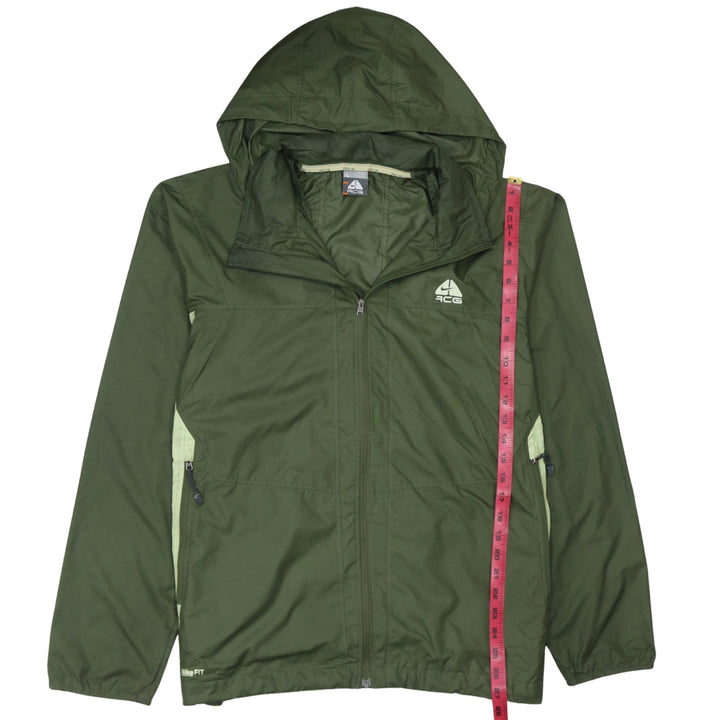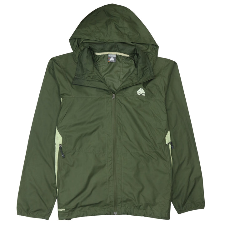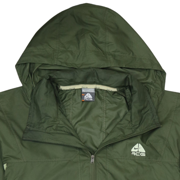 Nike Green ACG Hooded Windbreaker Men’s Large Zip Pockets Printed Logo Jacket