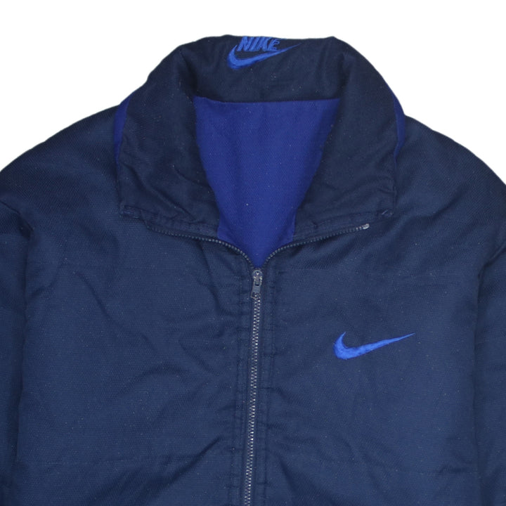 Nike Navy Blue Puffer Jacket Men's Large Embroidered Swoosh Logo Zip Pockets Outerwear