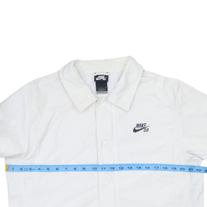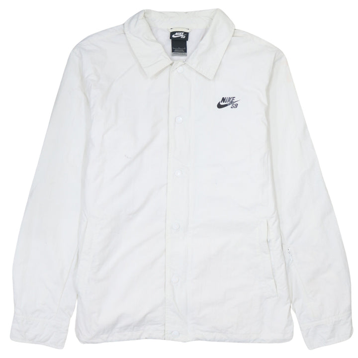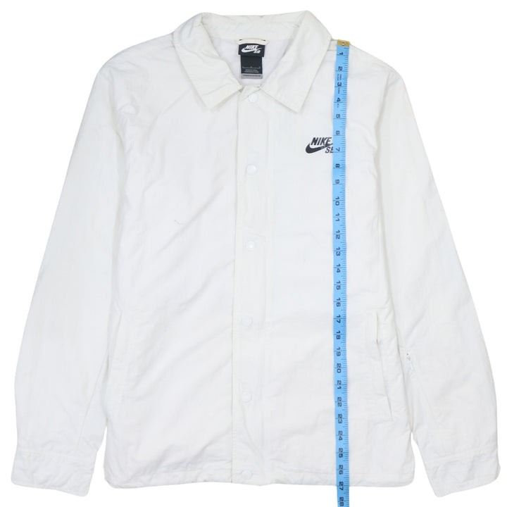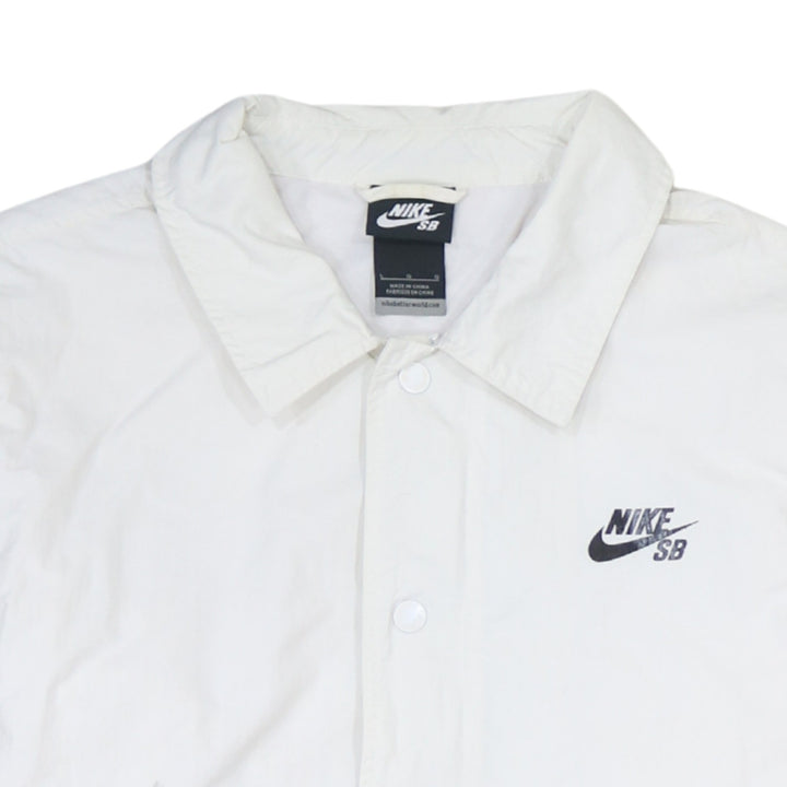 Nike White SB Coach Jacket Men's Large Printed Chest Back Logo Snap Windbreaker Outerwear