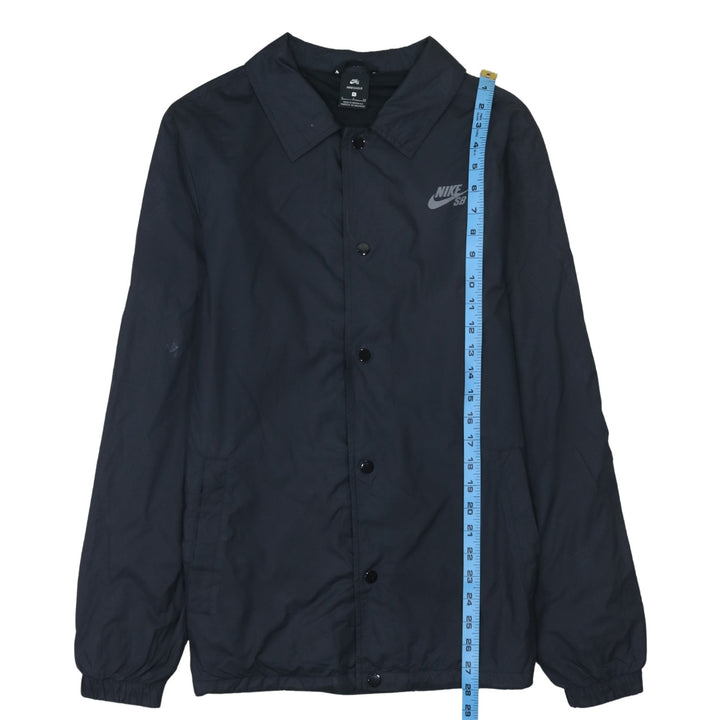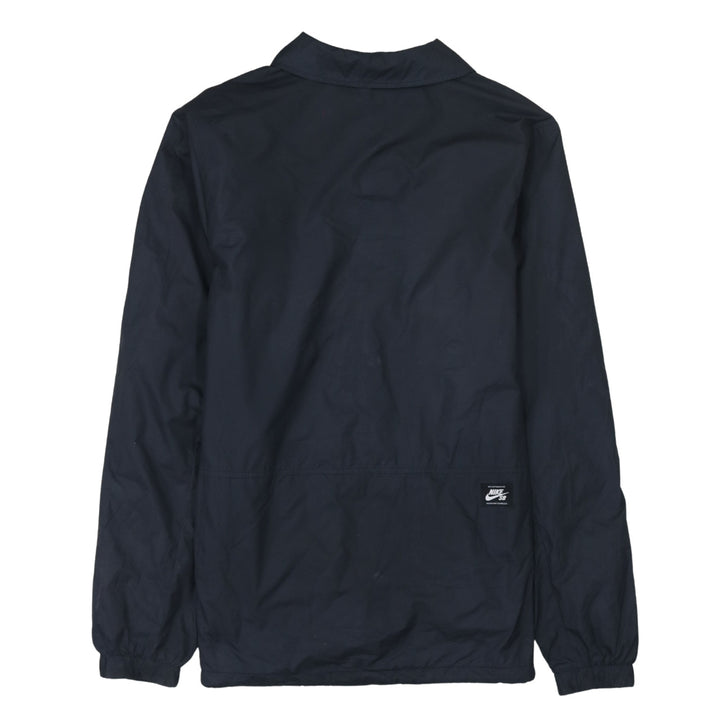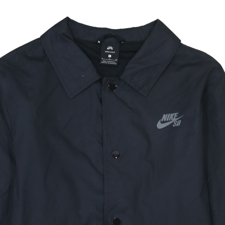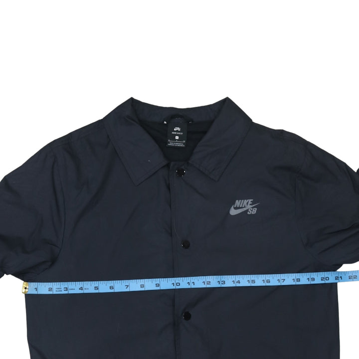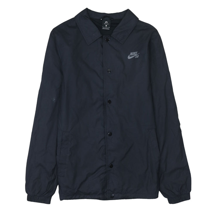 Nike Black SB Coach Jacket Men's Small Printed Logo Button Front Windbreaker Track Jacket