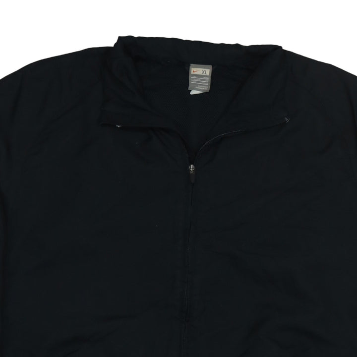 Nike jacket, Nike windbreaker, Nike track jacket, black Nike jacket, black windbreaker, men's Nike jacket, men's black jacket, men's windbreaker, full zip Nike, full zip jacket, lightweight jacket, mesh lined jacket, casual jacket, sportswear jacket, training jacket, outerwear, track top, nylon jacket, size XL, XLarge jacket, relaxed fit jacket, elastic cuffs, elastic hem, zip pockets, black track top, athleisure jacket, casual sports jacket, everyday jacket, Nike outer layer, black mesh lining, Nike menswear, classic Nike, plain black jacket, minimalist jacket, shell jacket, Nike running jacket, spring jacket, autumn jacket, layering piece, wardrobe staple, zip front jacket, coach style jacket, Nike apparel, Nike clothing, pre-owned Nike jacket, second hand Nike, A grade condition, 90s style Nike, vintage Nike jacket, black casual top, festival jacket, commuting jacket, gym cover up