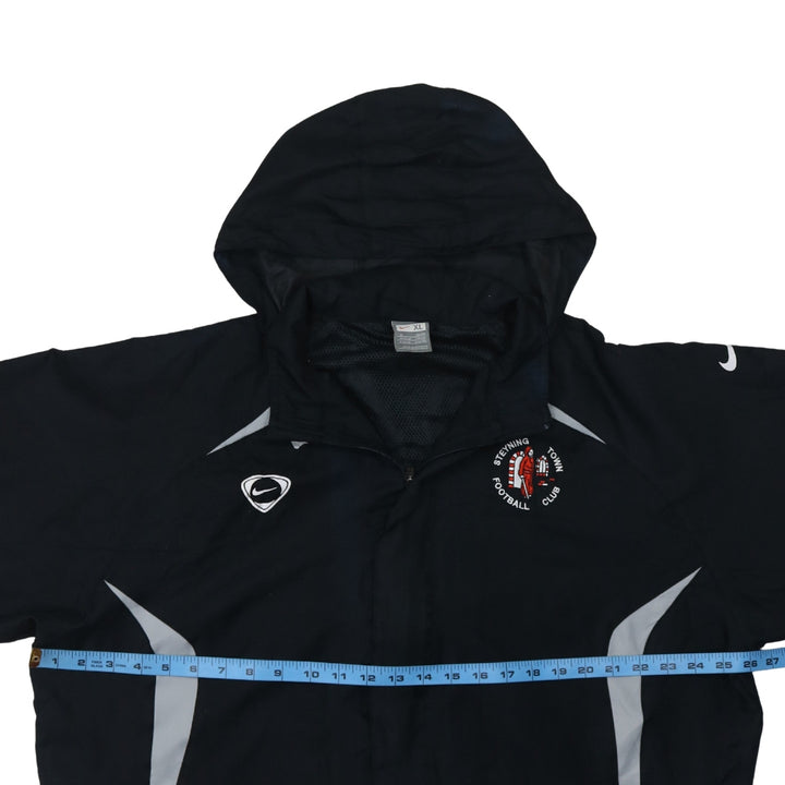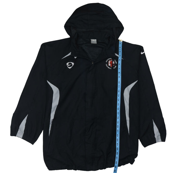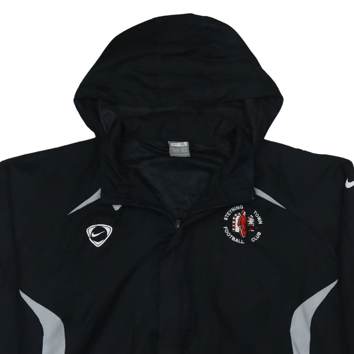 Nike Black Hooded Windbreaker Jacket Men’s XLarge Embroidered Crest Zip Pockets Football Top